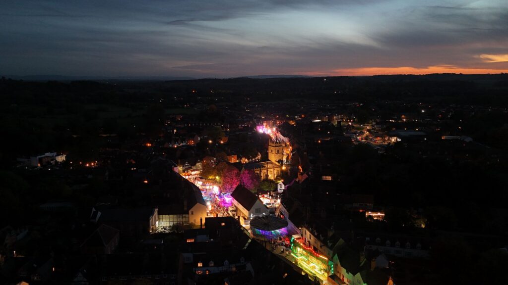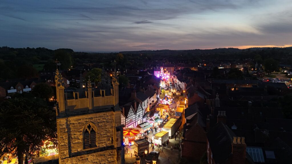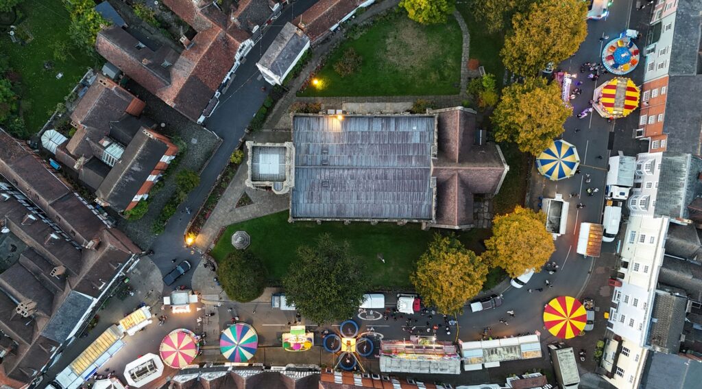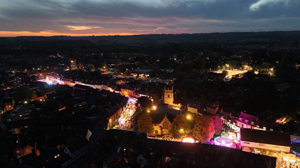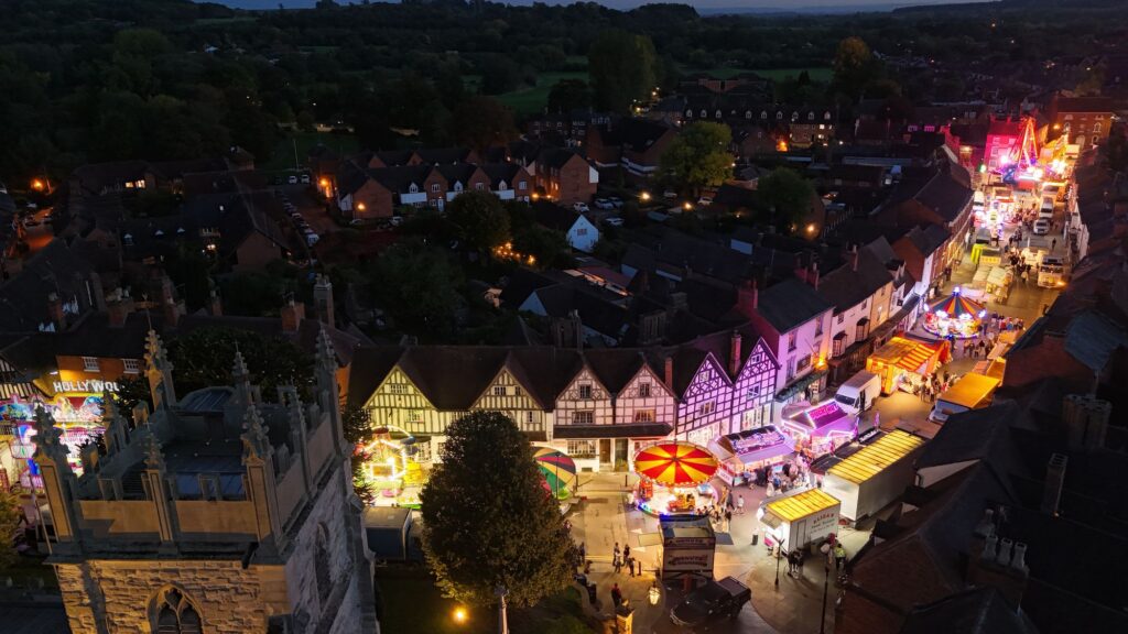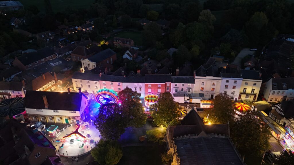A selection of aerial pictures of Alcester’s Mop fair taken on Monday the 6th of October 2025.