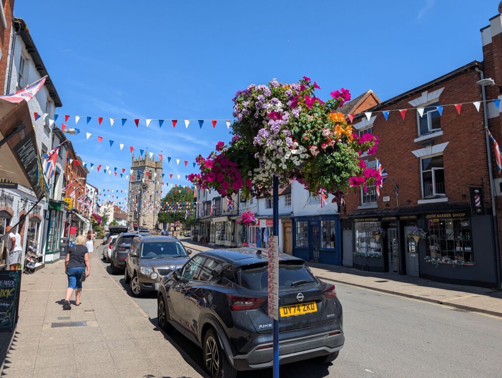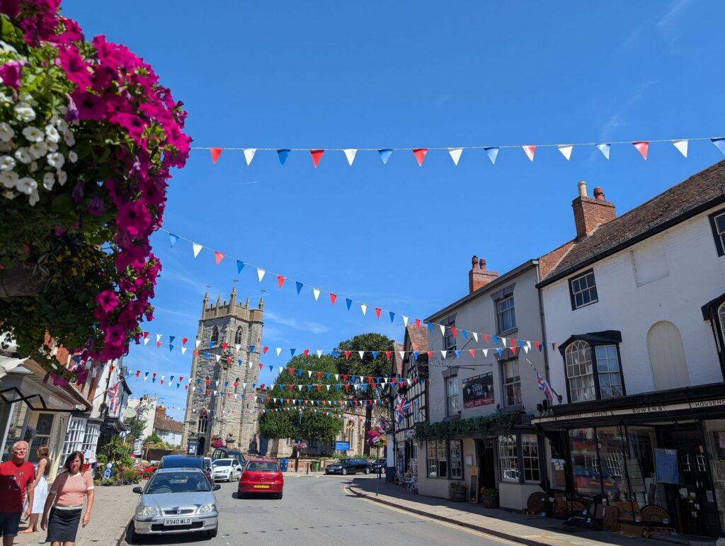 I think the town looks great with the bunting out on the high street and just look at that blue/green summer backdrop. Marvellous!