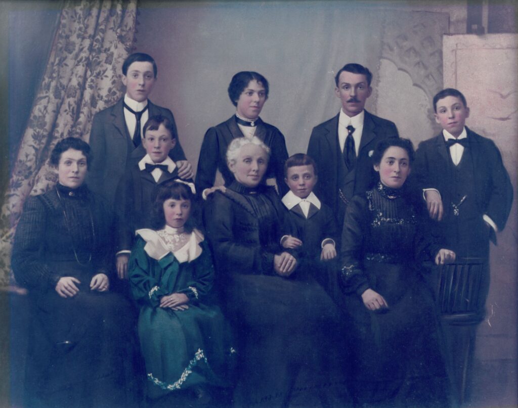 This is a picture I have been in possession of for a number of years. It is a painted picture of the Llewellyn family from Clydach, Swansea in or around the turn of the 20th century. My great-grandfather is the youngest of nine children in this portrait, standing on his mother’s left.