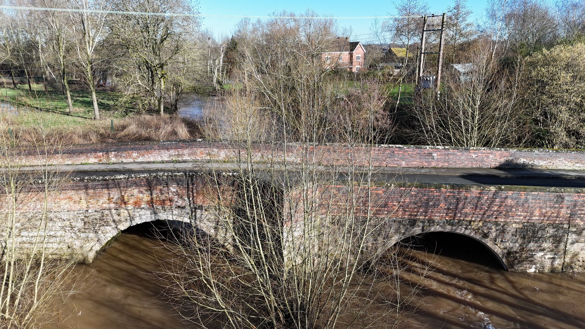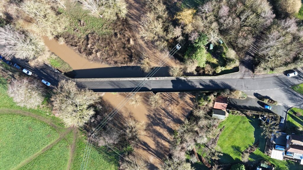 Oversley Bridge flooding Birdseye viewFlooding around Oversley BridgeOversley BridgeClose-up of Oversley BridgeFlooding around Oversley BridgeAlcester flooding around the Oversley BridgeAlcester flooding around the Stratford Road